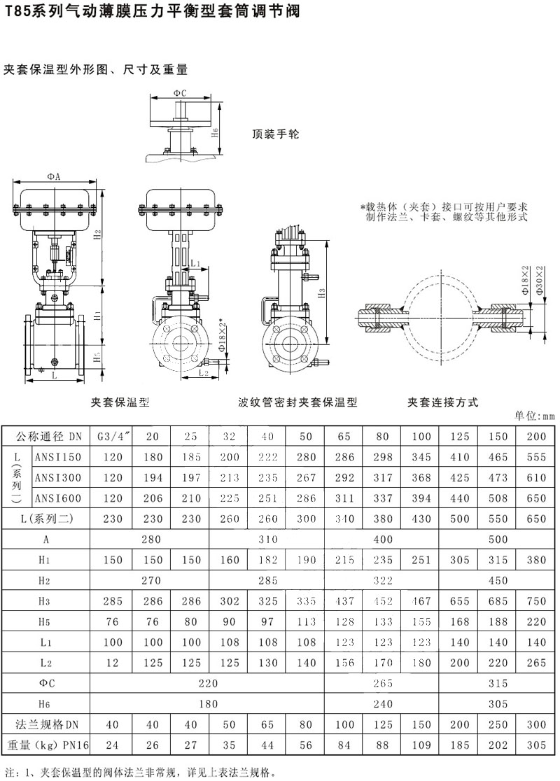 T85-16C-DN50,T85-40C-DN32,T85-63C-DN40,T85-100C-DN20,壓力平衡型套筒調(diào)節(jié)閥