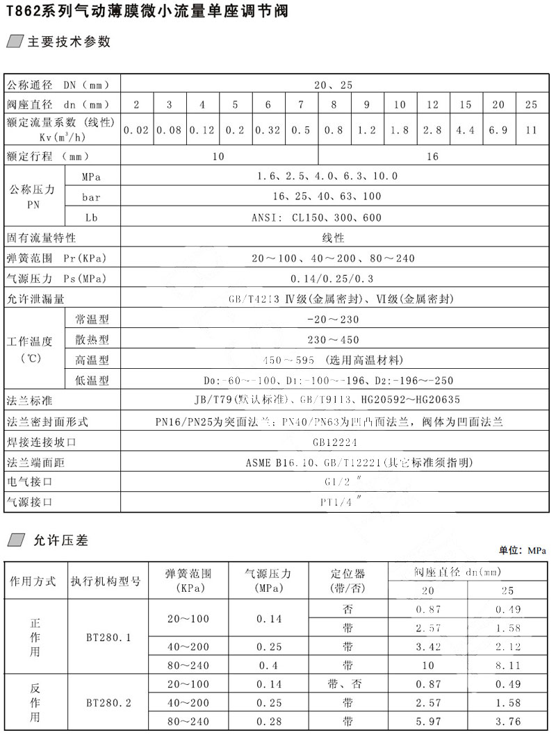 產(chǎn)品: 瀏覽次數(shù):642T862-16B,T862-25B,T862-40B,T862-63B,T862-100B-DN20,氣動薄膜微小流量單座調(diào)節(jié)閥