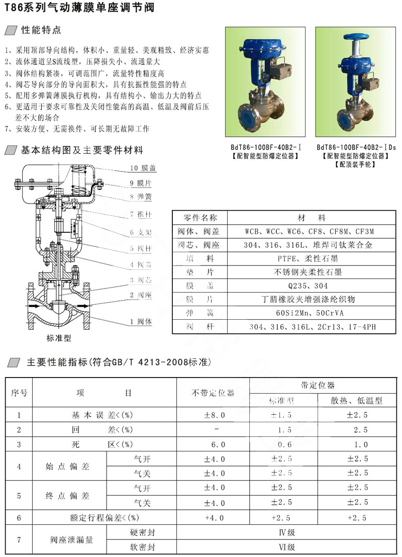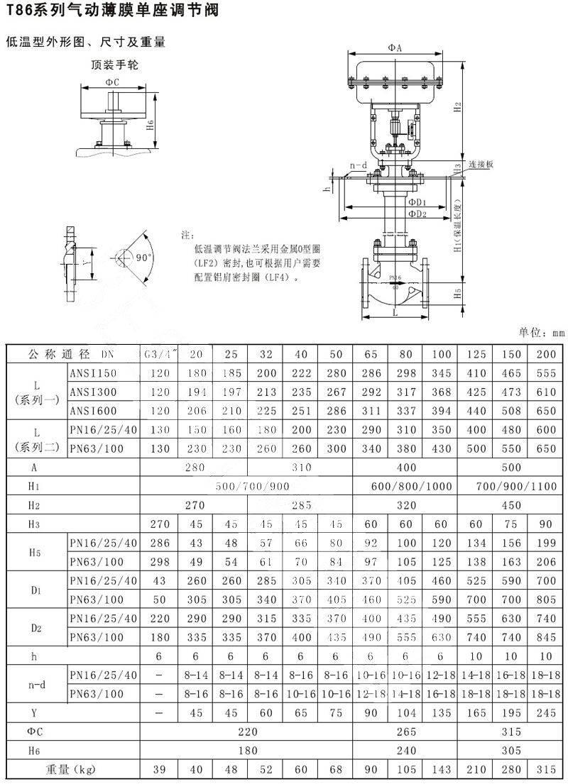 T86-16C,T86-16B,T86-25C,T86-40B,T86-63C,T86-100B,氣動(dòng)薄膜單座調(diào)節(jié)閥