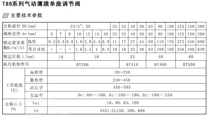 瀏覽次數(shù):706T86-16C,T86-16B,T86-25C,T86-40B,T86-63C,T86-100B,氣動(dòng)薄膜單座調(diào)節(jié)閥 |