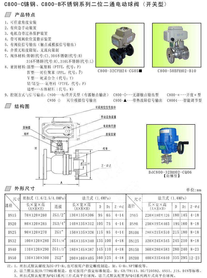 C800-15,C800-20,C800-25,C800-32,C800-40,C800-50,不銹鋼電動(dòng)二通球閥