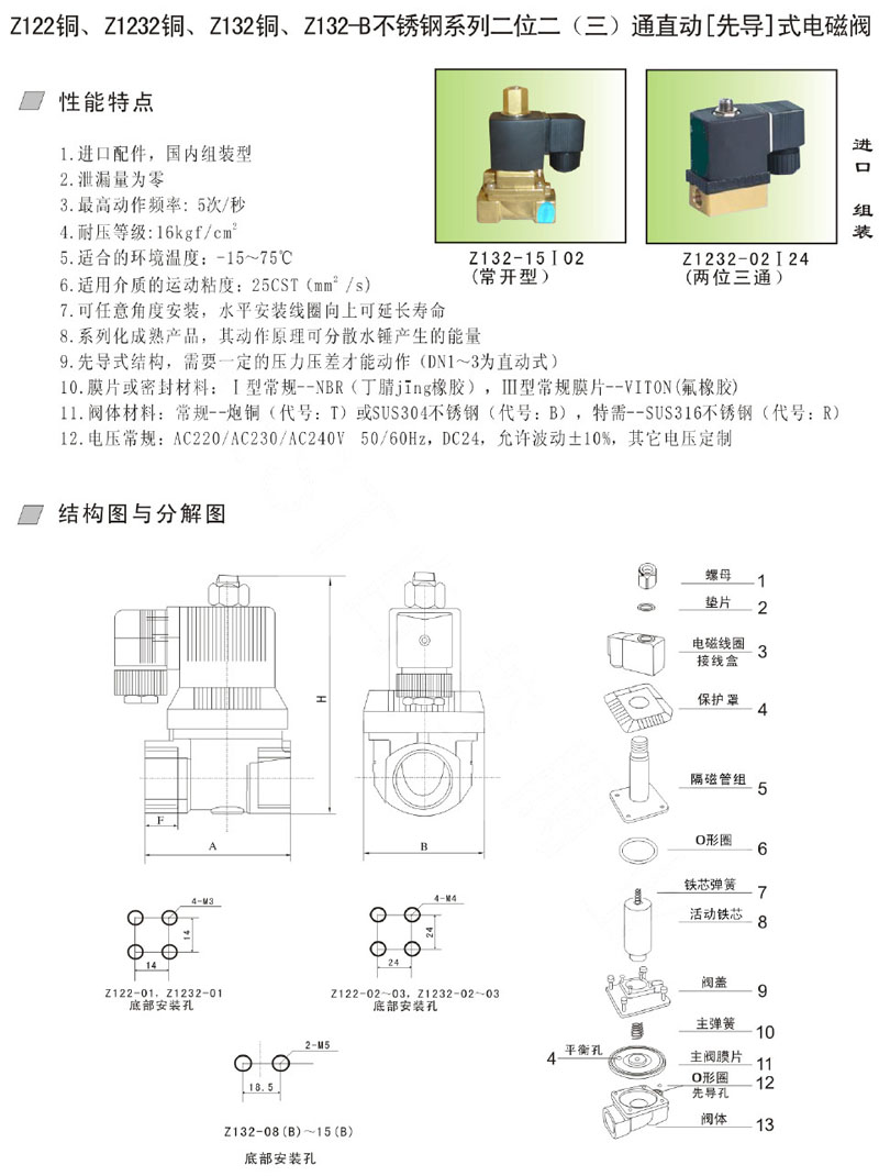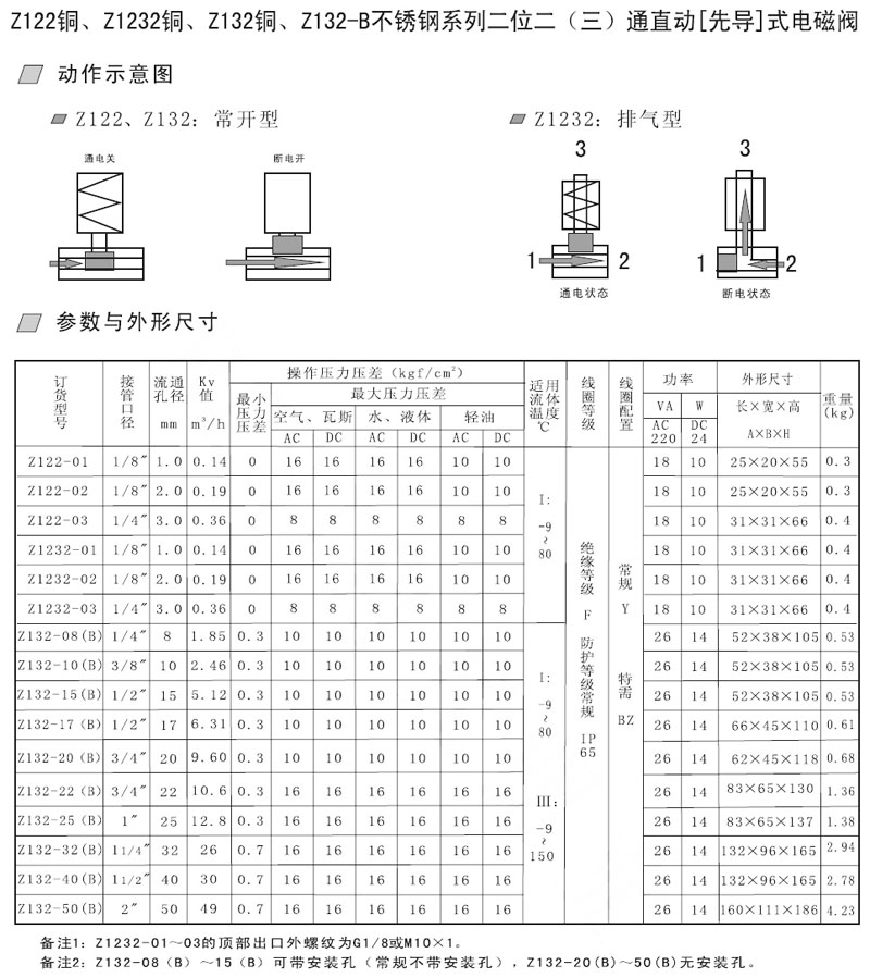 詳細信息 Z122-01,Z122-02,Z132-08,Z132-10,Z132-15B,Z132-17B,電磁閥