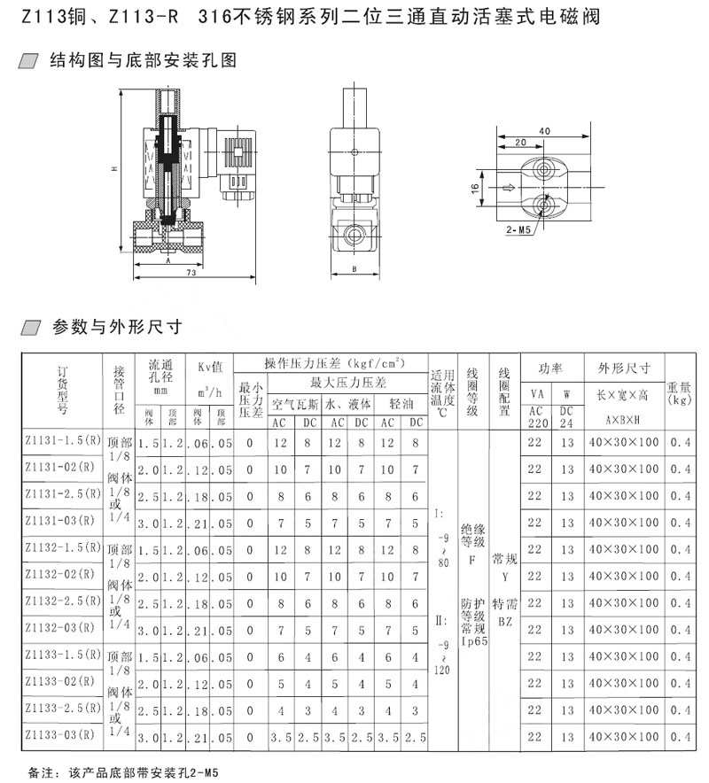 Z1131-1.5,Z1131-02,Z11312-1.5,Z11312-02,Z11313-2.5,Z11313-03,直動(dòng)活塞式電磁閥