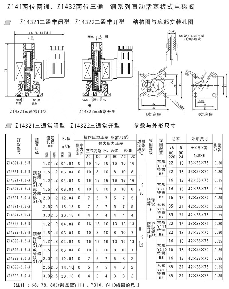 詳細信息 Z14321-1.2-B,Z14322-1.5-B,Z1433-1.2-B,Z141-1.2-A,Z14321-2.5-A,直動活塞板式電磁閥
