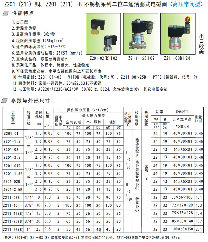 Z201-01,Z201-1.5,Z201-2.5R,Z211-08B,Z211-25,Z211-15B,活塞式高壓電磁閥