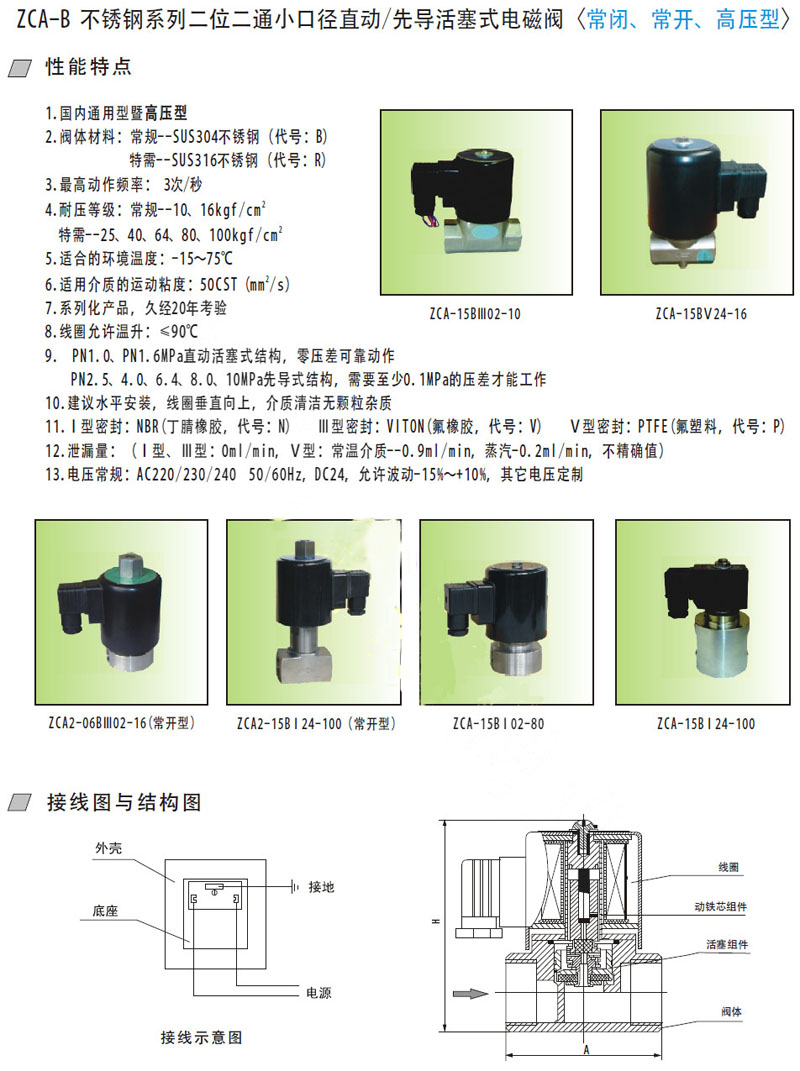 ZCA-03BIII,ZCA-06BIII,ZCA-10BIII,ZCA-12B-16,ZCA-15B-16,小口徑活塞式電磁閥