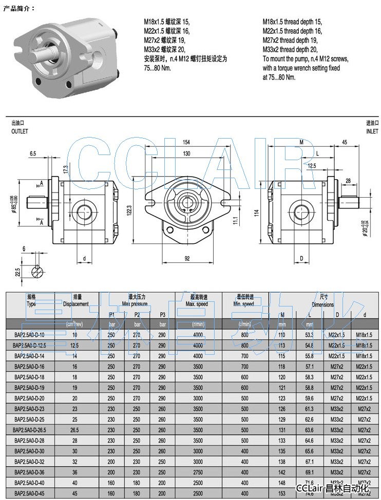 詳細(xì)信息 BAP2.5A0-D-10,BAP2.5A0-D-12.5,BAP2.5A0-D-14,齒輪泵