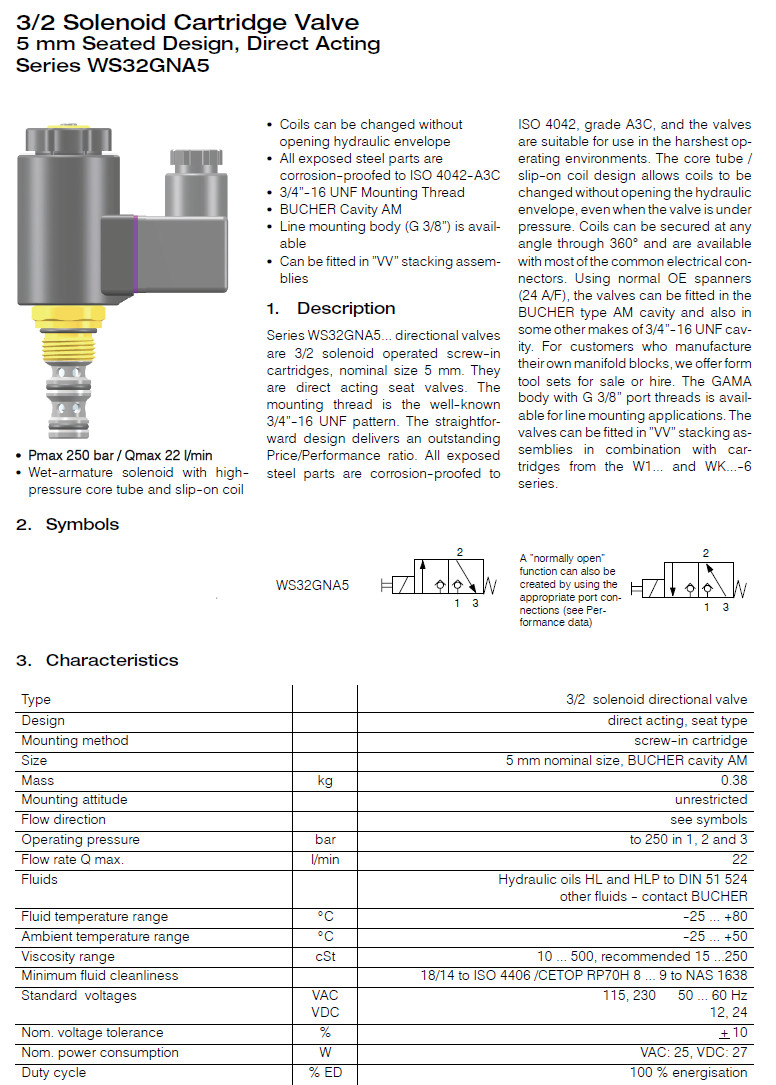 詳細(xì)信息 WS32GNA5-1,WS32GNA5V-1,Bucher方向閥
