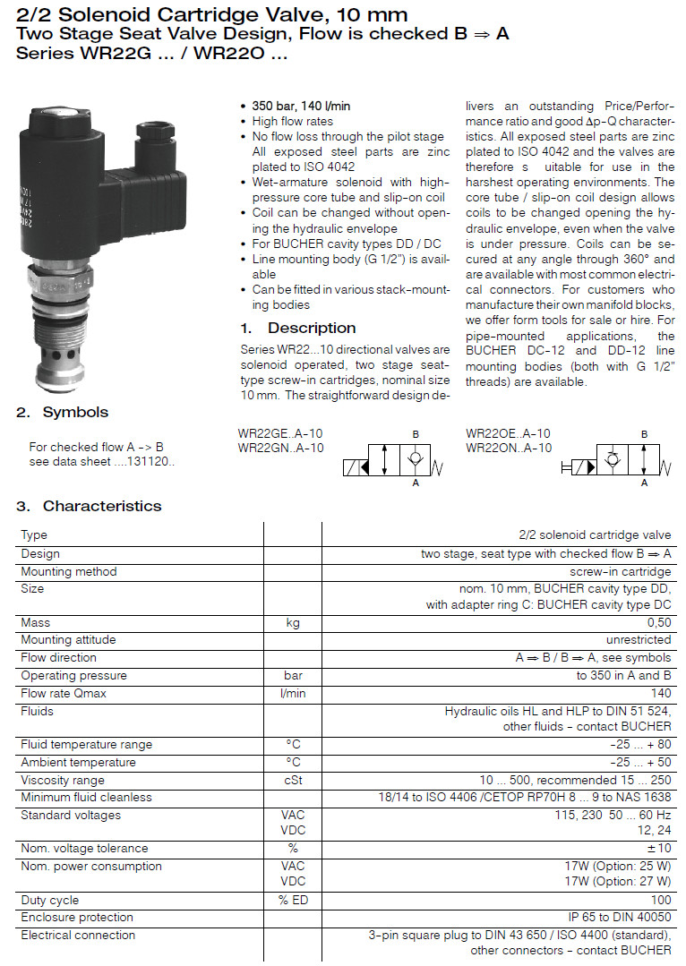 詳細信息 WR22GEDA-10-1,WR22OEDA-10-1,WR22GNDA-10-1,WR22ONDA-10-1,WR22GECA-10-1,Bucher方向閥