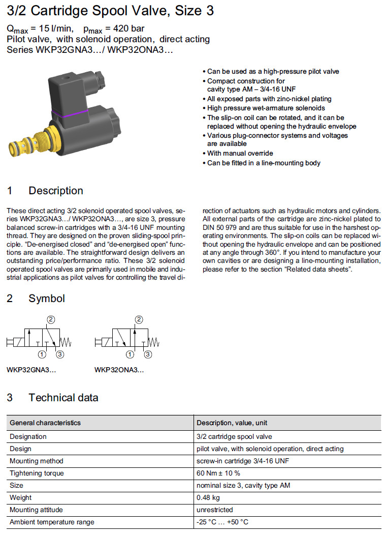 詳細(xì)信息 WKP32GNA3-1,WKP32ONA3-1,WKP32GNA3V-1,WKP32ONA3V-1,Bucher方向閥