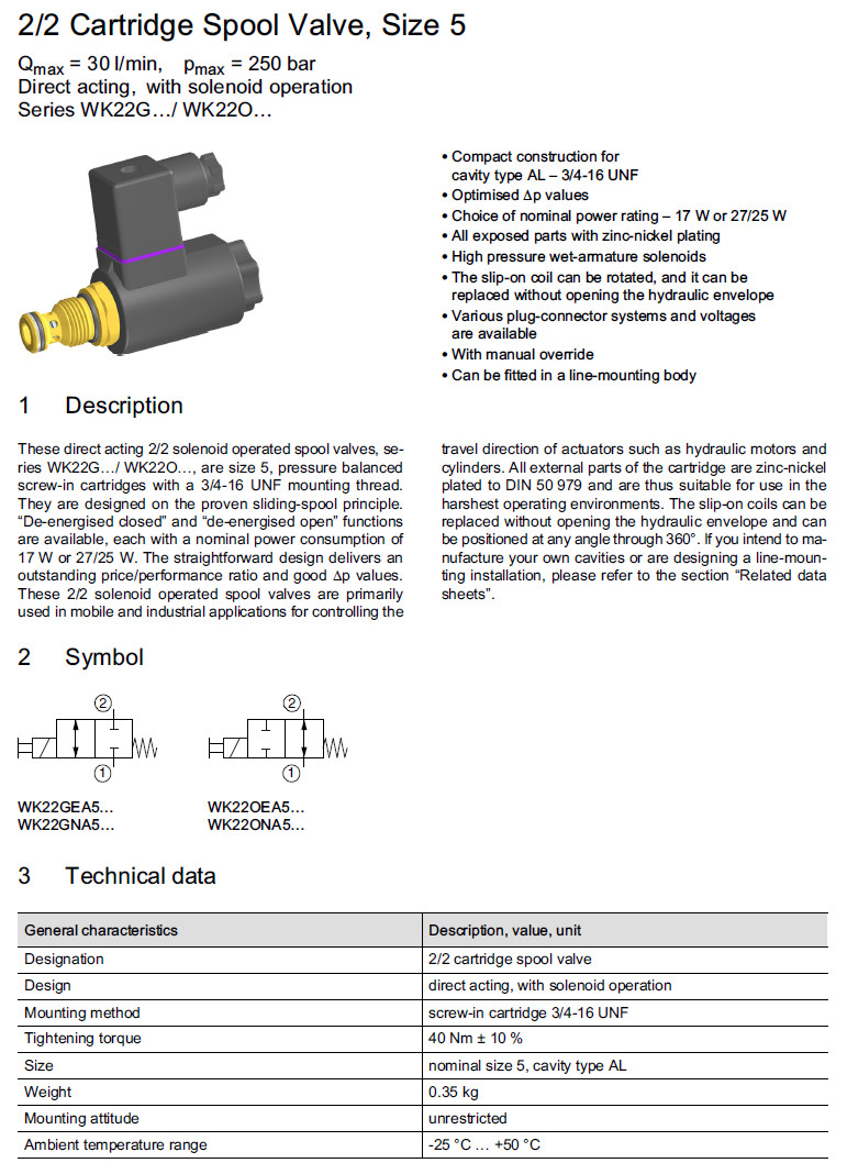 詳細信息 WK22GNA5-1,WK22ONA5-1,WK22GEA5-1,WK22OEA5-1,WK22GNA5V-1,WK22ONA5V-1,Bucher方向閥