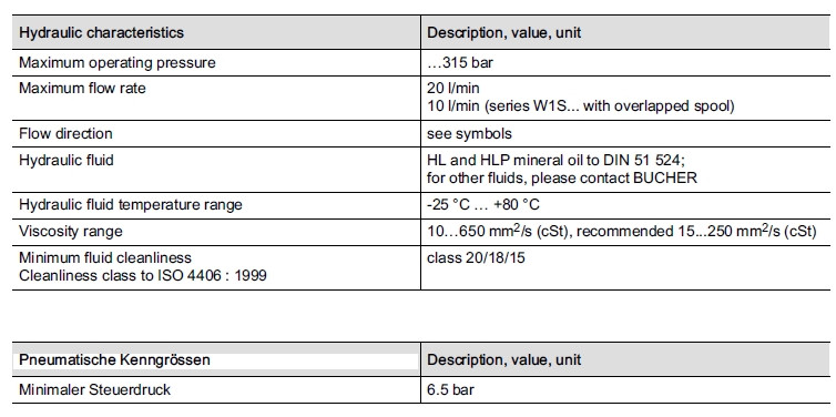 詳細(xì)信息 W1RQA1,W1RSA1,W1SQA1,W1SSA1,Bucher方向閥