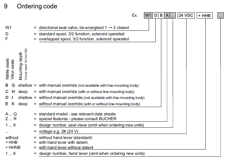 詳細(xì)信息 W1DBA1-24VDC,W1DCA1-24VDC,W1DDA1-24VDC,W1DEA1-24VDC,W1FBA1-24VDC,Bucher方向閥