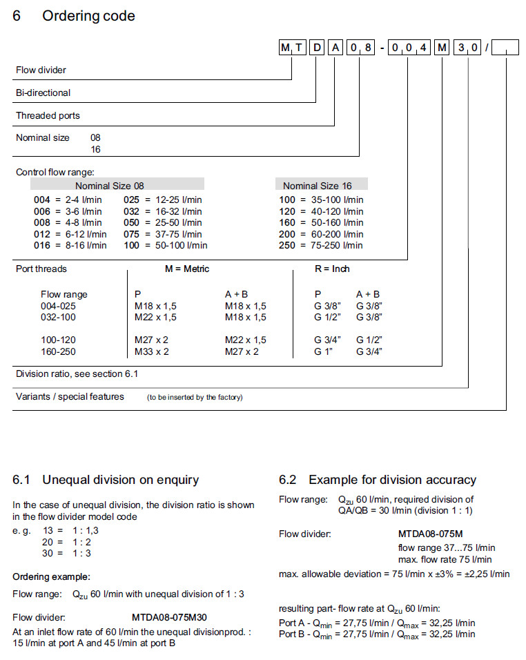 MTDA08-004M,MTDA08-032M,MTDA08-008R,MTDA08-075R,MTDA16-250M,Bucher流量分配器