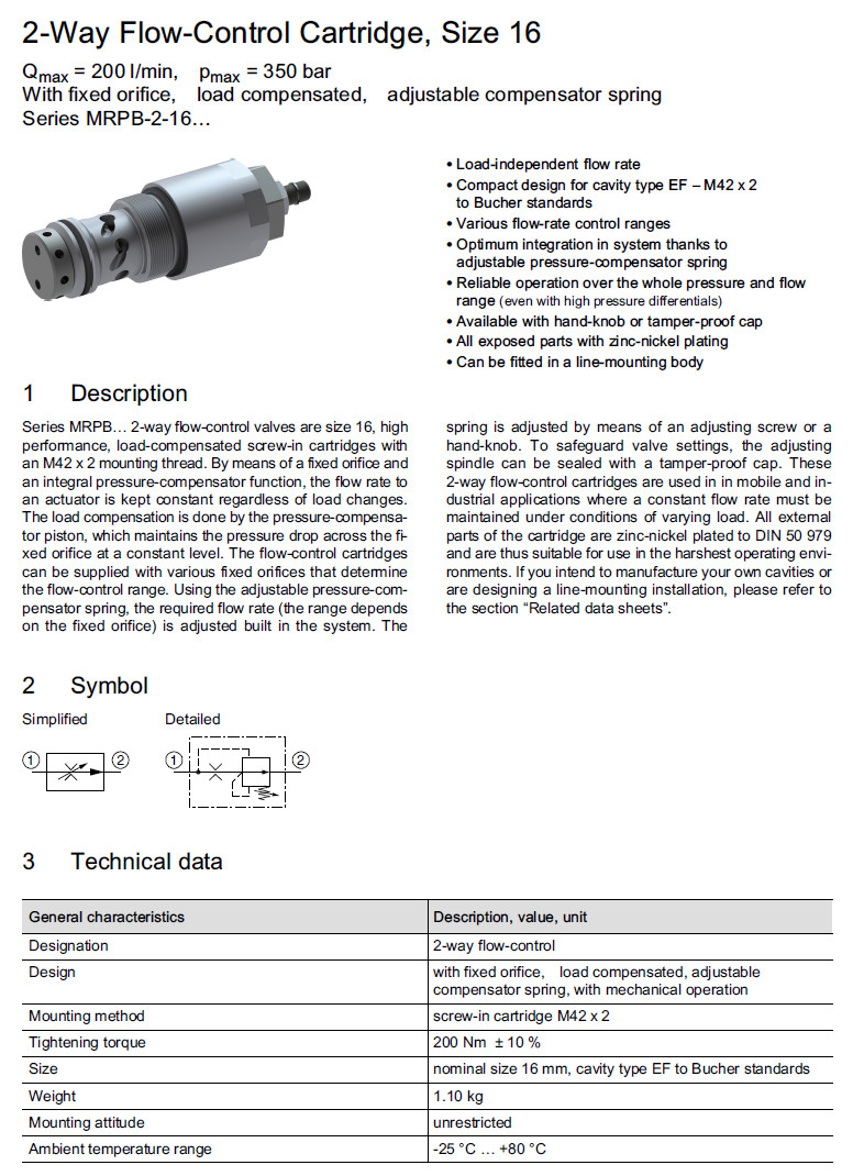 詳細信息 MRPB-2-16-S-200-1,MRPB-2-16-S-140-1,MRPB-2-16-H-110-1,MRPB-2-16-H-070-1,Bucher流量閥