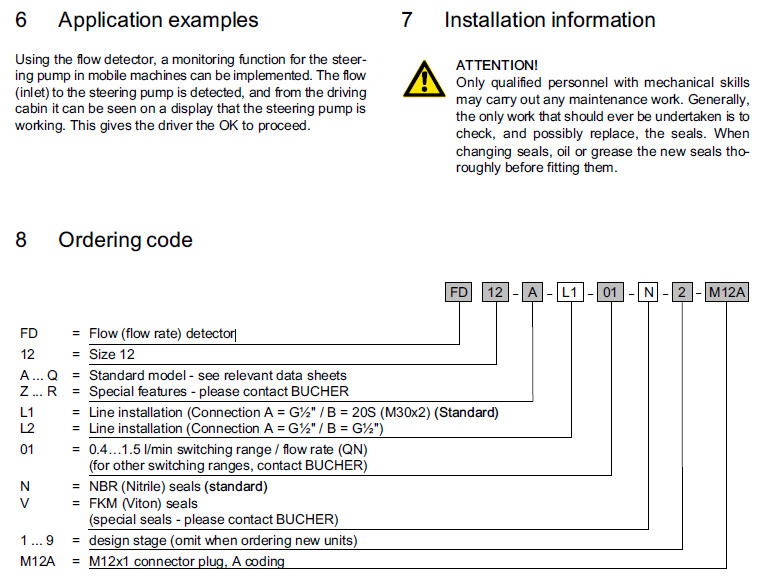 詳細信息 FD12-A-L1-01-N-2-M12A,FD12-A-L2-01-N-2-M12A,FD12-A-L1-01-V-2-M12A,Bucher流量檢測器