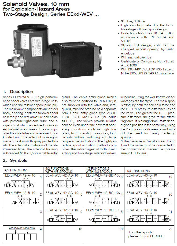 EExd-WEV-42-A,EExd-WEV-42-B,EExd-WEV-43-A,EExd-WEV-43-B,Bucher方向閥