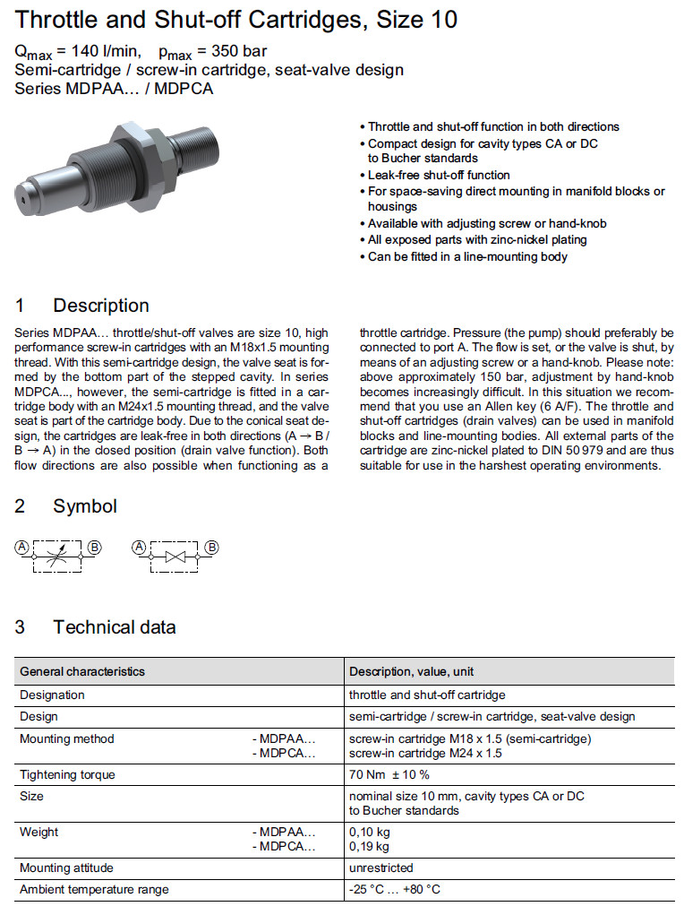 詳細(xì)信息 MDPAA-10S-1,MDPCA-10S-1,MDPAA-10H-1,MDPCA-10H-1,MDPAA-V-10S-V-1,Bucher流量調(diào)節(jié)閥