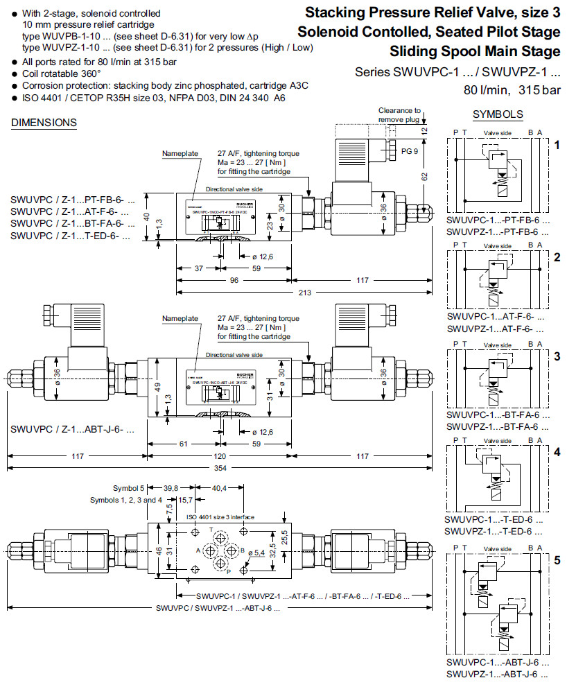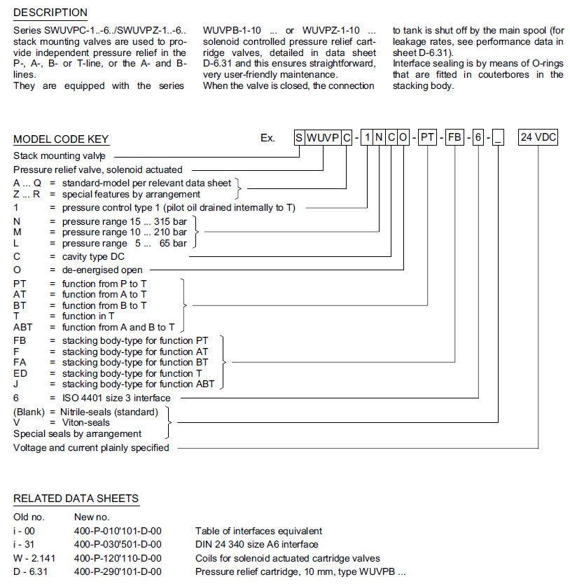 SWUVPC-1NCO-PT-FB-6,SWUVPC-1MCO-PT-FB-6,SWUVPC-1LCO-PT-FB-6,Bucher卸壓閥