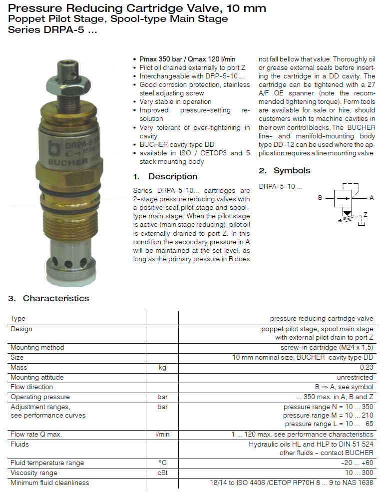 詳細(xì)信息 DRPA-5-10-SLM-3,DRPA-5-10-SL-3,DRPA-5-10-HL-3,DRPA-5-10-SM-3,Bucher減壓閥
