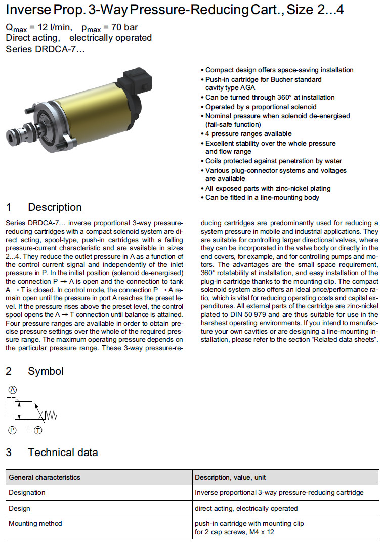 詳細(xì)信息 DRDCA-7045-2-2,DRDCA-7028-3-2,DRDCA-7022-3-2,DRDCA-7016-4-2,Bucher減壓閥