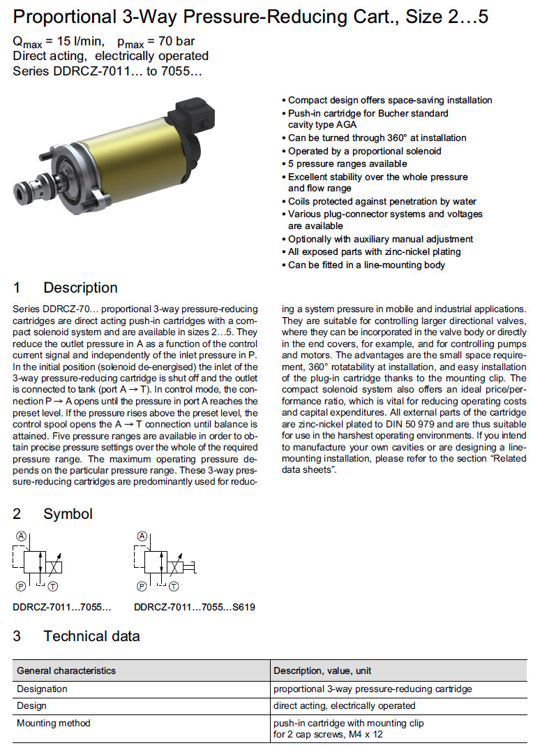 詳細(xì)信息 DDRCZ-7055-2,DDRCZ-7040-2,DDRCZ-7030-3,DDRCZ-7020-4,DDRCZ-7011-5,Bucher減壓閥