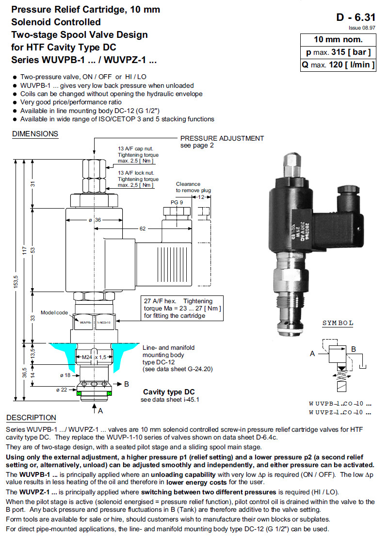 詳細信息 WUVPB-1MCO-10-1,WUVPB-1LCO-10-1,WUVPB-1NCO-10-1,Bucher電磁控制壓力安全閥