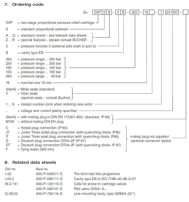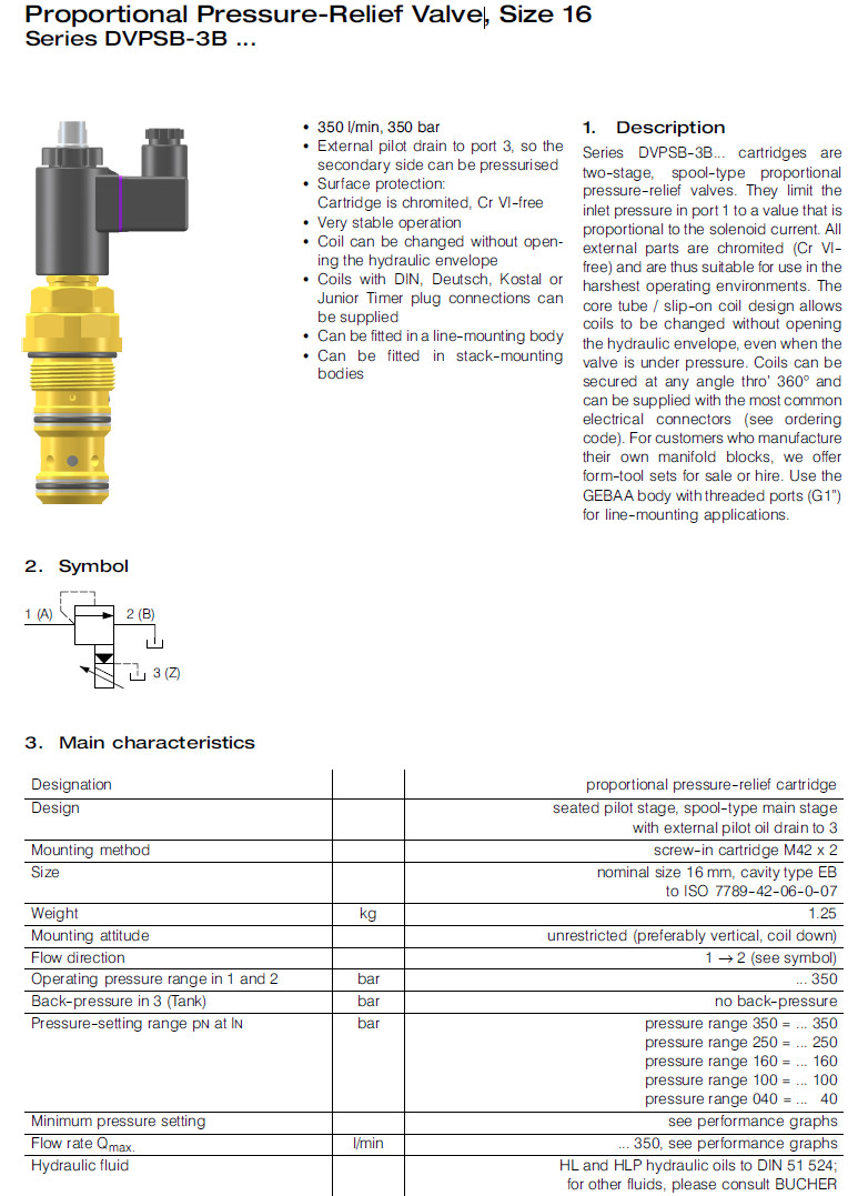 詳細信息 DVPSB-3B-040-16-1,DVPSB-3B-100-16-1,DVPSB-3B-250-16-1,DVPSB-3B-350-16-1,Bucher比例壓力溢流閥