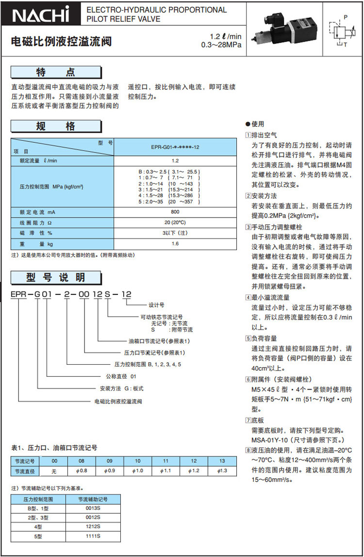 EFR-G01-B-0013S-12,EFR-G01-1-0013S-12,EFR-G01-2-0012S-12,EFR-G01-5-1111S-12,NACHI電磁比例液控溢流閥