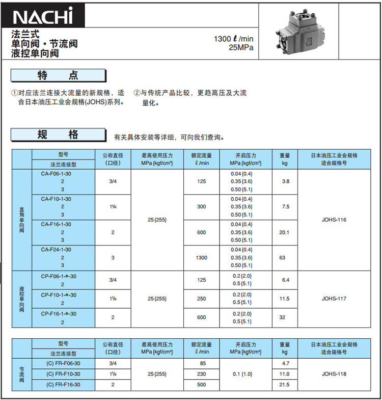 CA-F06,CA-F10,CA-F16,CP-F06,CP-F10,CP-F16,CA-F24-3-30,CP-F06-2-*-30,NACHI單向閥