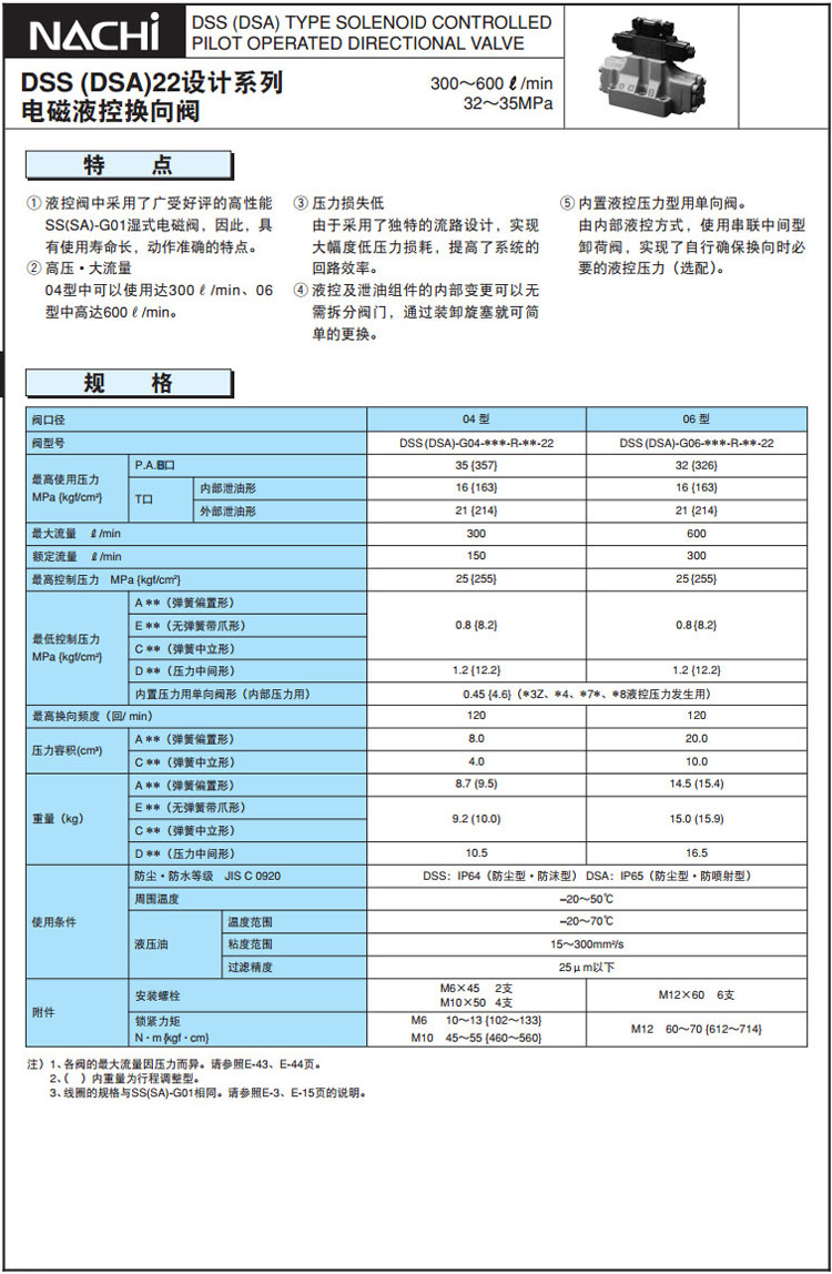 DSS-G04,DSS-G06,DSS-G04-A3Z-R-E230-22,DSS-G06-C7X-R-C115-22,DSS-G04-A3X-R-C230-22,NACHI電磁液控?fù)Q向閥