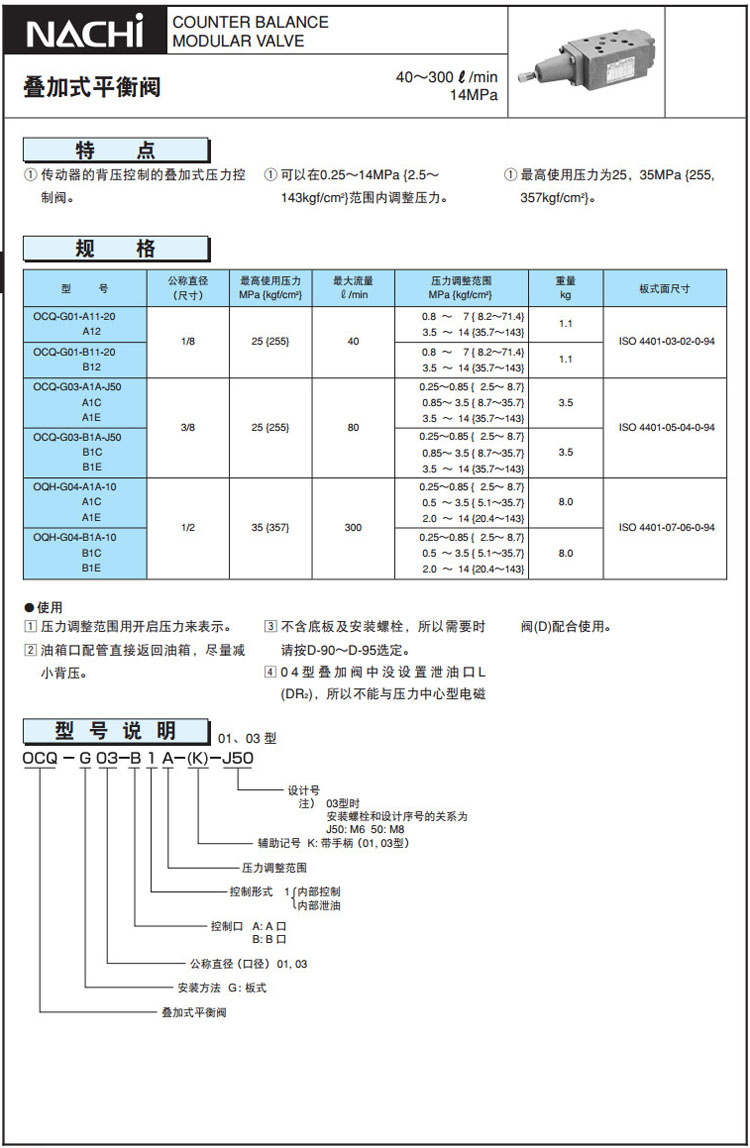 OCQ-G01,OCQ-G03,OCQ-G04,OCQ-G01-A11-20,OCQ-G04-A1E-10,NACHI疊加式平衡閥
