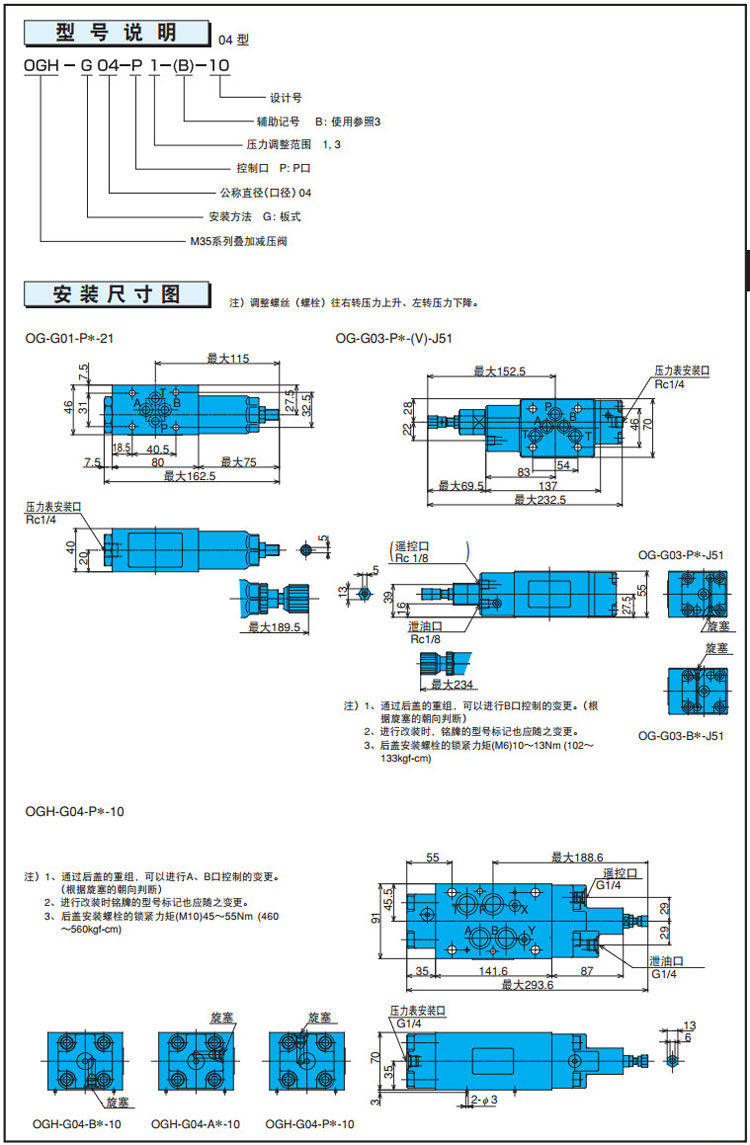 OG-G01,OG-G03,OG-G04,OG-G01-PC-21,OG-G03-P3-V-J51,OG-G04-P1-10,NACHI疊加式減壓閥