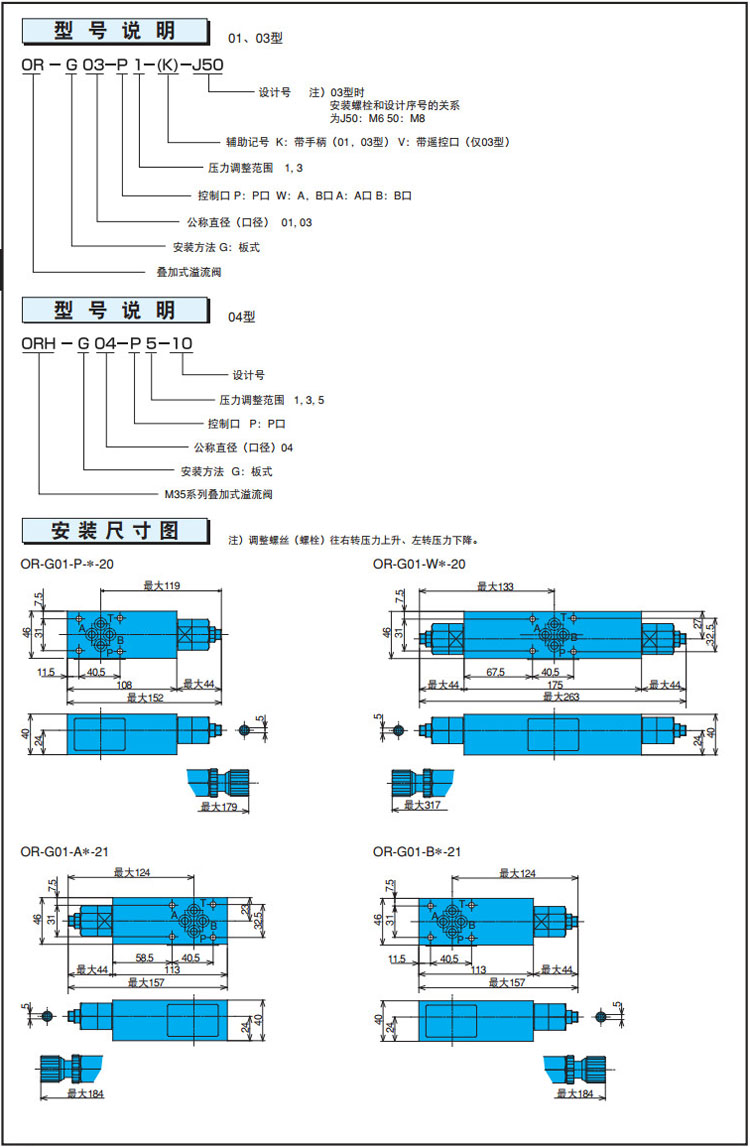詳細(xì)信息 OR-G01,OR-G03,ORH-G04,OR-G01-P1-20,ORH-G04-P5-10,OR-G03-P3-V-J50,NACHI疊加式溢流閥
