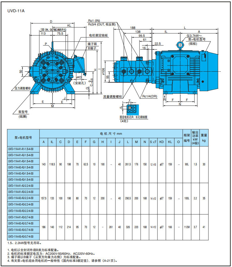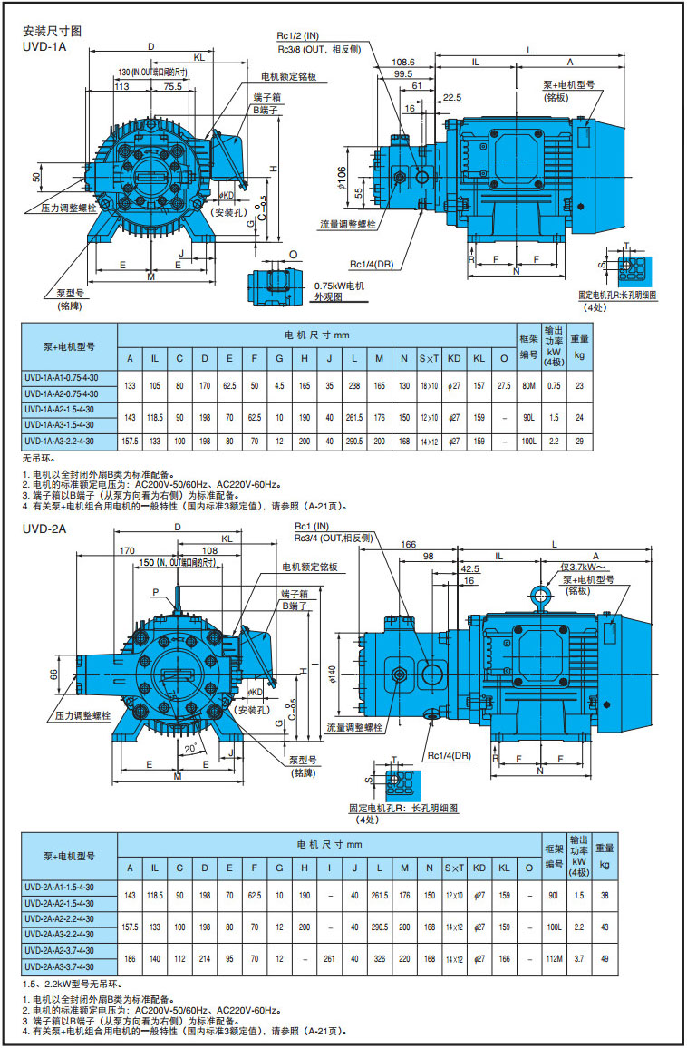UVD-1A,UVD-11A,UVD-1A-A1-0.75-4-30,UVD-11A-A1-A1-1.5-4-30,NACHI泵+電機組合