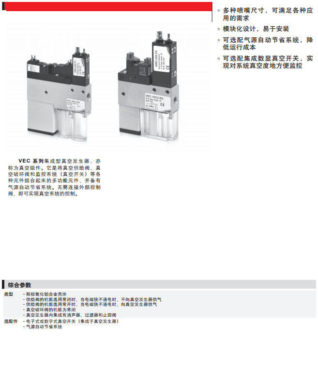 瀏覽次數(shù):1119VEC-10C-2RD,VEC-15C-2RE,VEC-20C-2VD,VEC-25C,camozzi集成型真空發(fā)生器 |