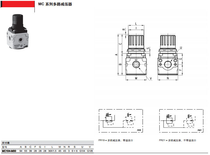 詳細信息 MC104-M00,MC104-M01,MC104-M11,MC104-M25,MC104-M70,camozzi多路減壓器