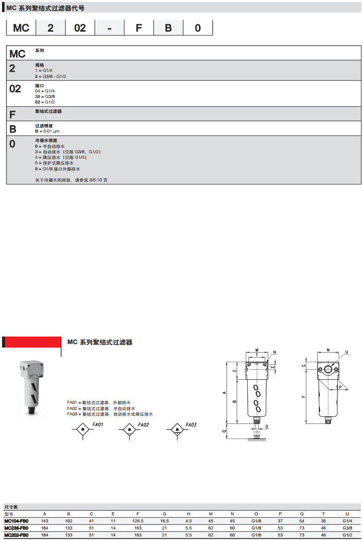 MC104-FB00,MC138-FB03,MC102-FB05,MC204-FB04,MC238-FB15,camozzi聚結(jié)式過(guò)濾器