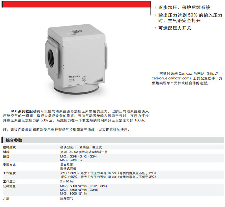 MX2-3/8-AV,MX2-1/2-AV,MX2-3/4-AV,MX3-3/4-AV,camozzi軟起動閥