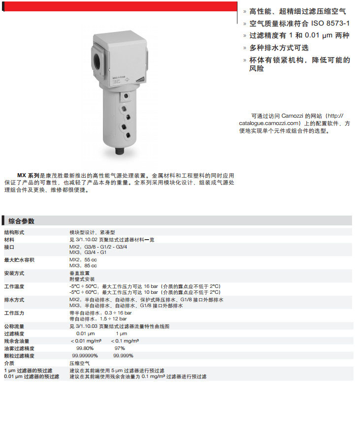 MX2-3/8-FC00,MX2-1/2-FC03,MX3-1/2-FC05,MX3-3/8-FC08,camozzi聚結(jié)式過濾器