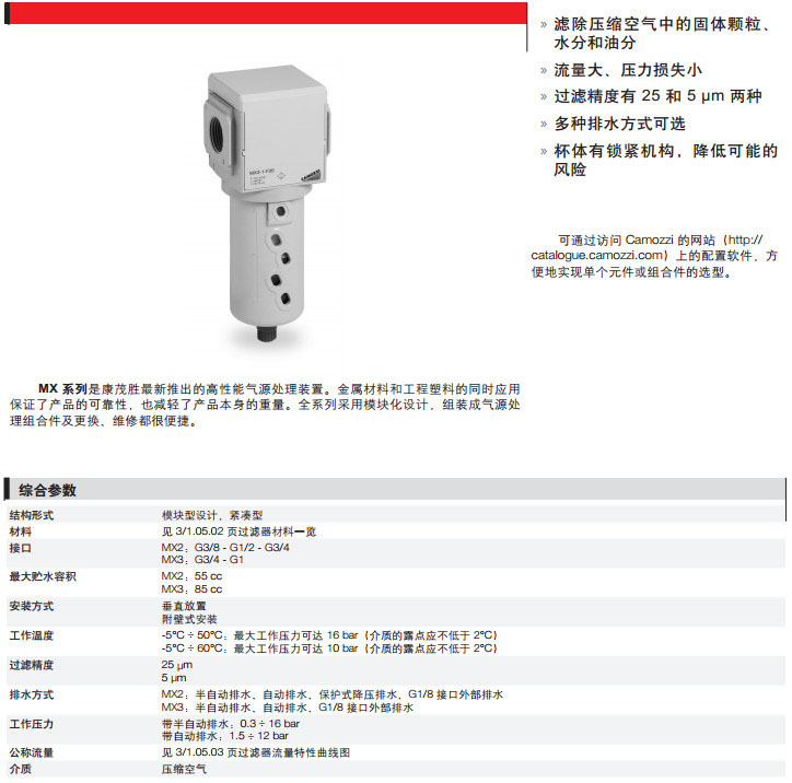 MX2-3/8-F00,MX2-1/2-F03,MX3-1/2-F05,MX3-3/8-F08,camozzi過濾器