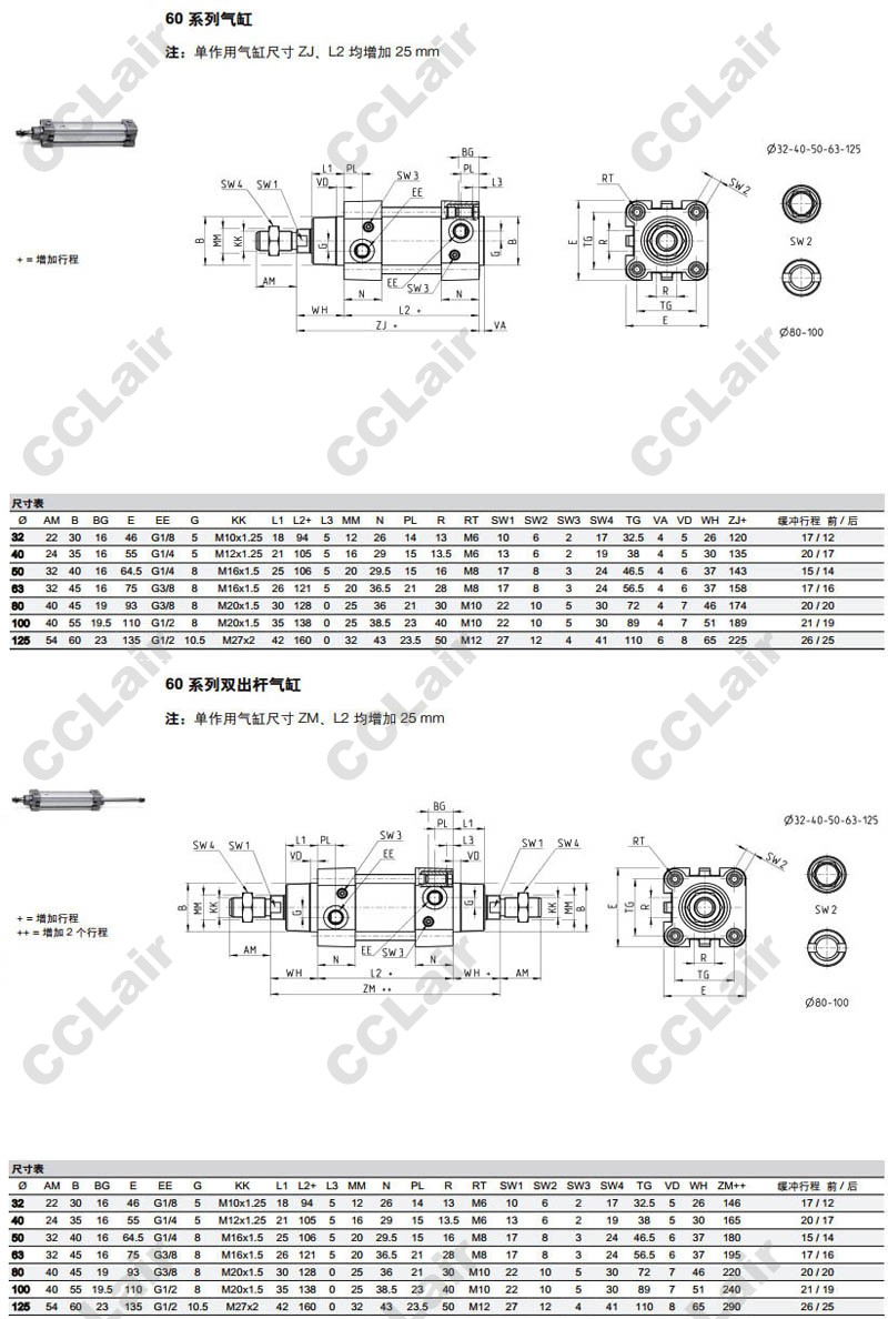 60M1L032A0100,60M2L050A0200,60M3L063A0250,60M4L080A0300,60M5L0125A0400,60N6L0100A0320,camozzi氣缸