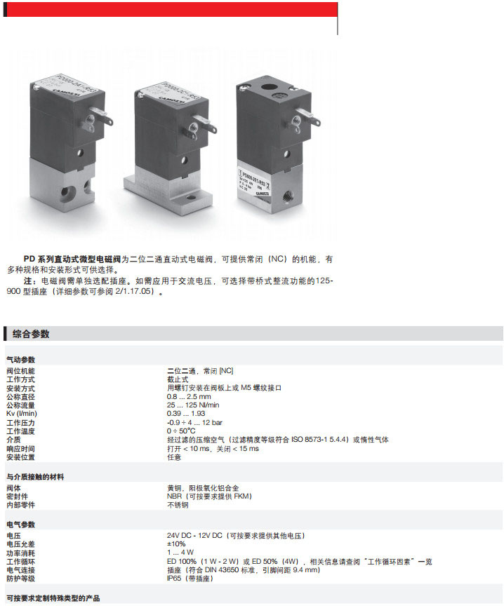 PD000-2A1-R51,PD000-2A5-F52,PD000-2E1-R53,PD000-2A2-R55,camozzi直動式微型電磁閥