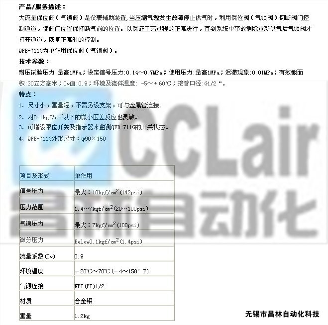 詳細(xì)信息 QFB-711G,大流量保位閥(氣鎖閥)生產(chǎn)廠家,價格