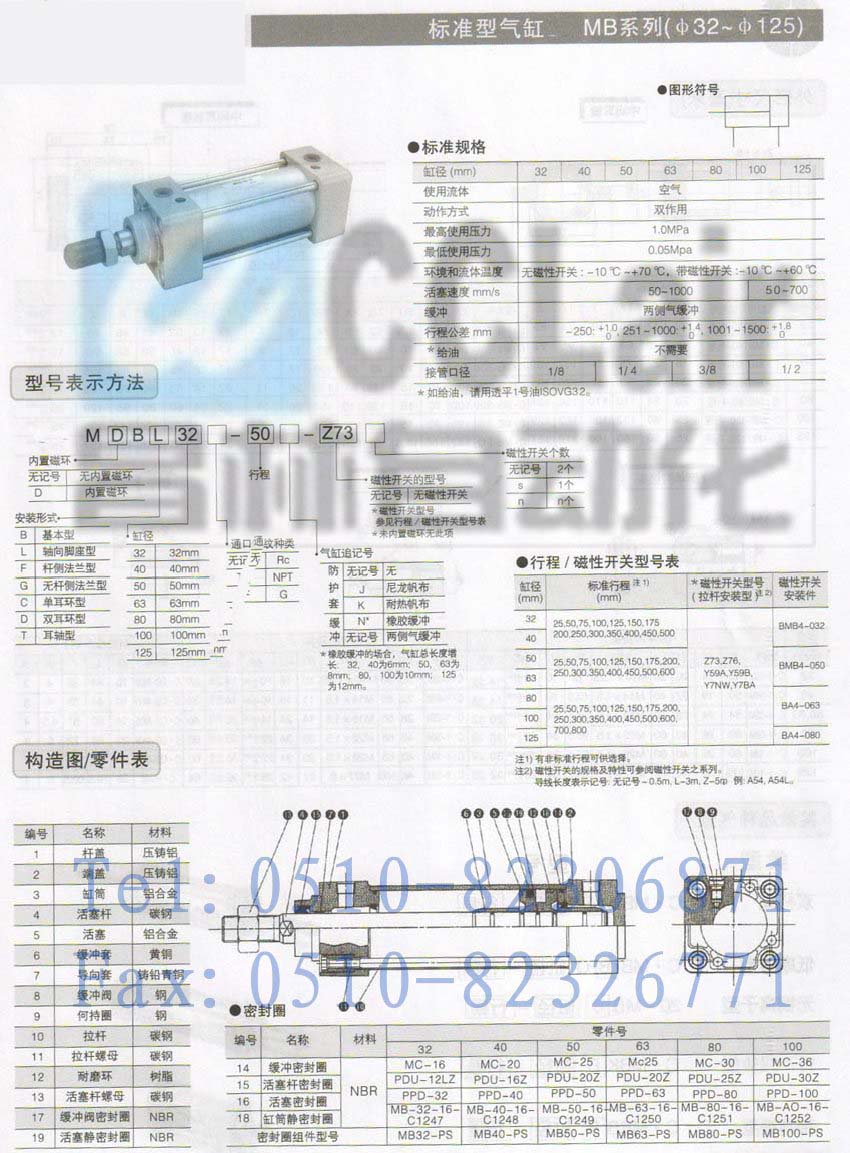 詳細(xì)信息 MBB100-125,MBB100-150,MBB100-175,MBB100-200,標(biāo)準(zhǔn)型氣缸,生產(chǎn)廠家,價(jià)格