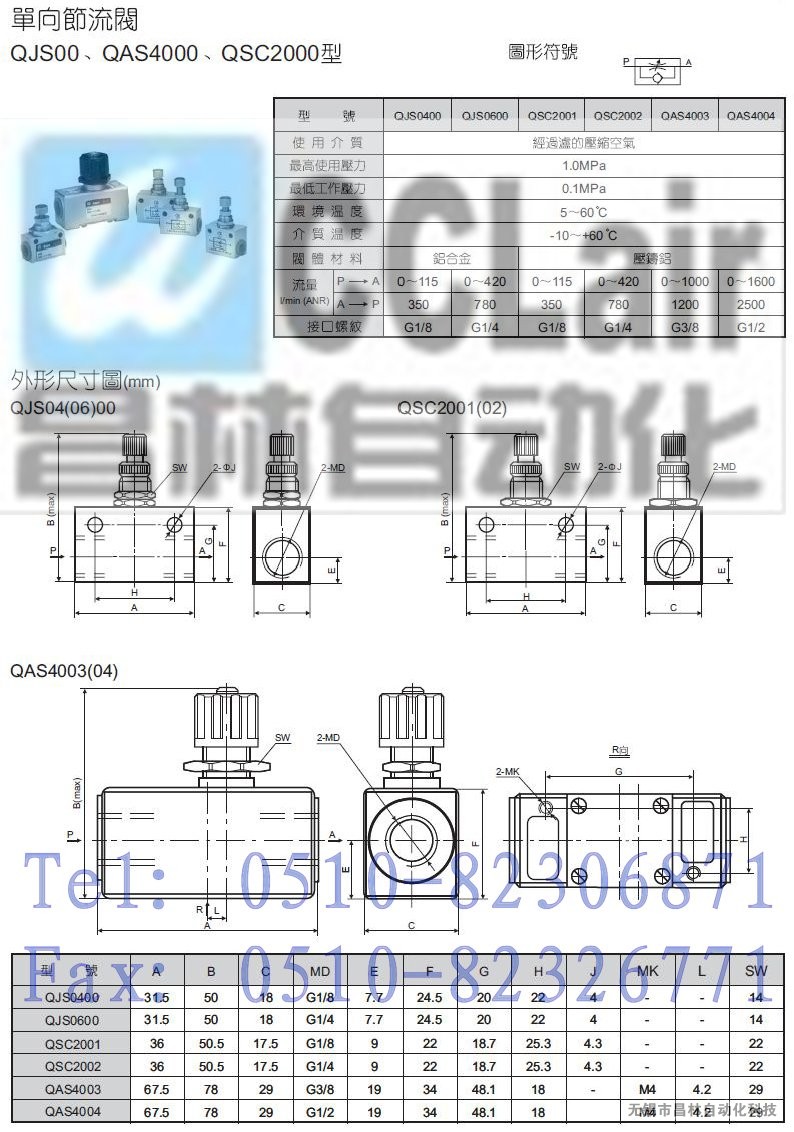 QJS0400,QJS0600,QSC2001,QSC2002,QAS4003,QAS4004,單向節(jié)流閥