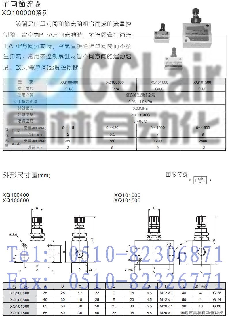 XQ100400,XQ100600,XQ101000,XQ101500,單向節(jié)流閥,生產(chǎn)廠家,價格