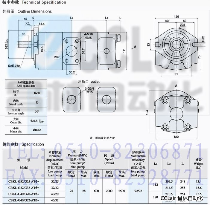 CBKL-G32/G25-AT,CBKL-G32/G32-AT,CBKL-G40/G20-AT,CBKL-G40/G32-AT,雙聯(lián)齒輪油泵(鑄鐵類)
