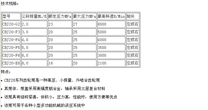 詳細(xì)信息 CBJ20-G2,CBJ20-F3,CBJ20-F4,CBJ20-F5,CBJ20-F6,CBJ20-E8,齒輪泵