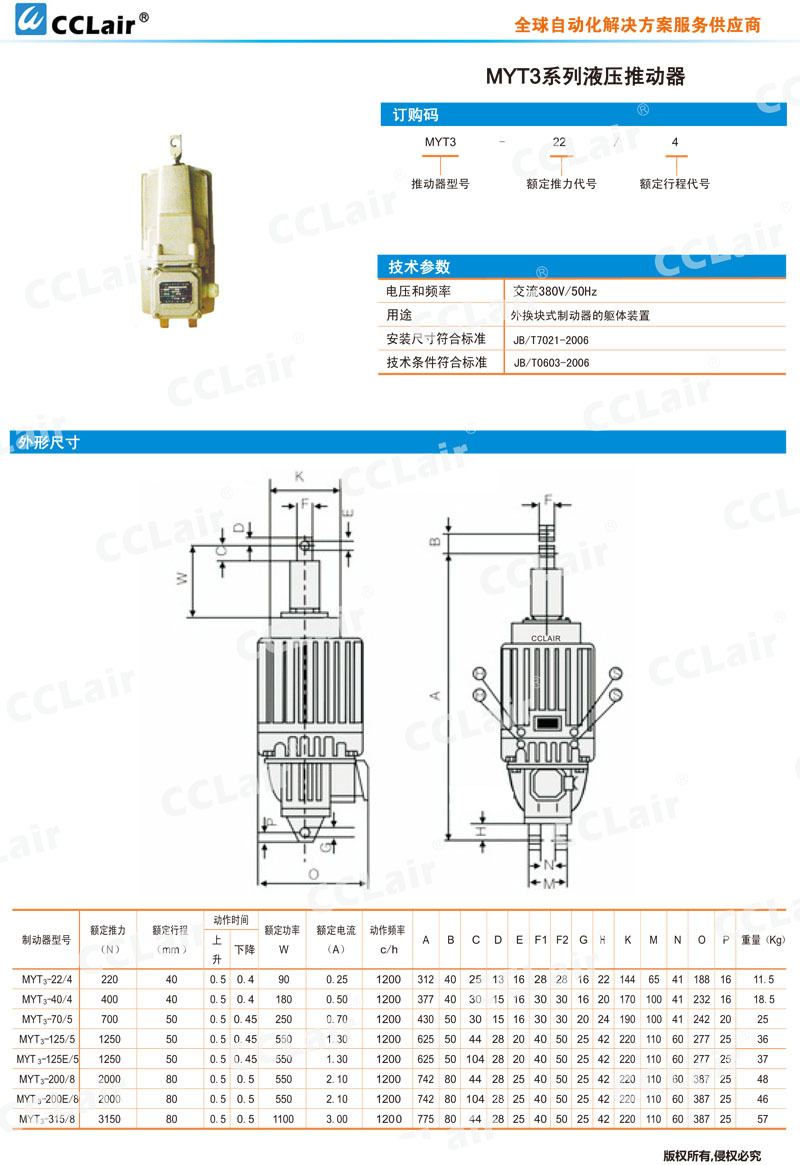 MYT3-22/4,MYT3-40/4,MYT3-70/5,MYT3-125/5,MYT3-125E/5,MYT3-200/8,MYT3-200E/8,MYT3-315/8,液壓推動器